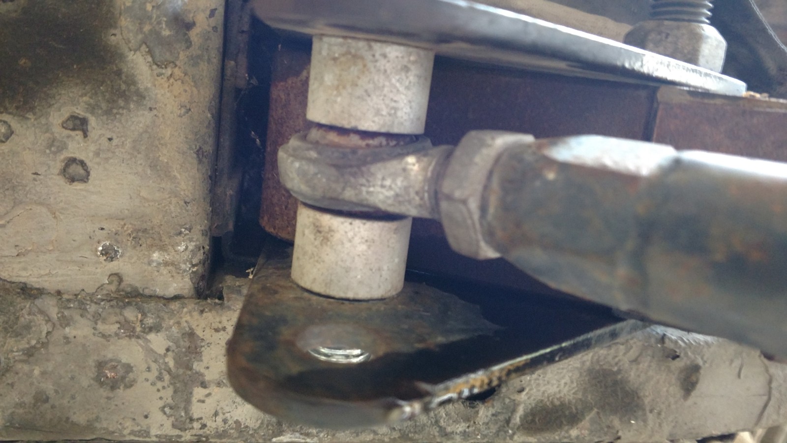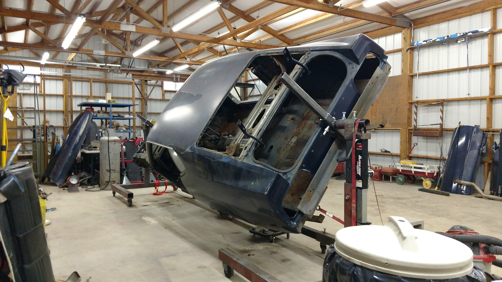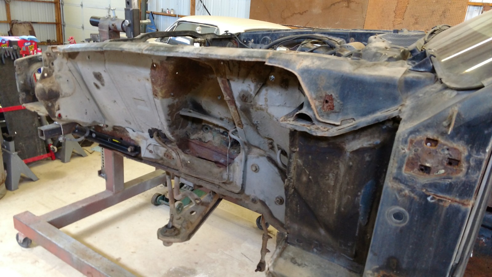Sam and I spent a few hours in the shop yesterday doing more teardown on the Mach I. We got the gas tank out and the remaining suspension on the driver's side. Bad news, the unibody frame rail under the driver's side upper a-arm is just as bad as the other side. Bad news, the front eye-bolts on the rear springs are frozen to the aluminum eye (part of the Caltracs traction bars). I'm not sure how I'm going to get them off now. The heim joints on the Caltracs are also frozen. Just more parts to go on the list.
