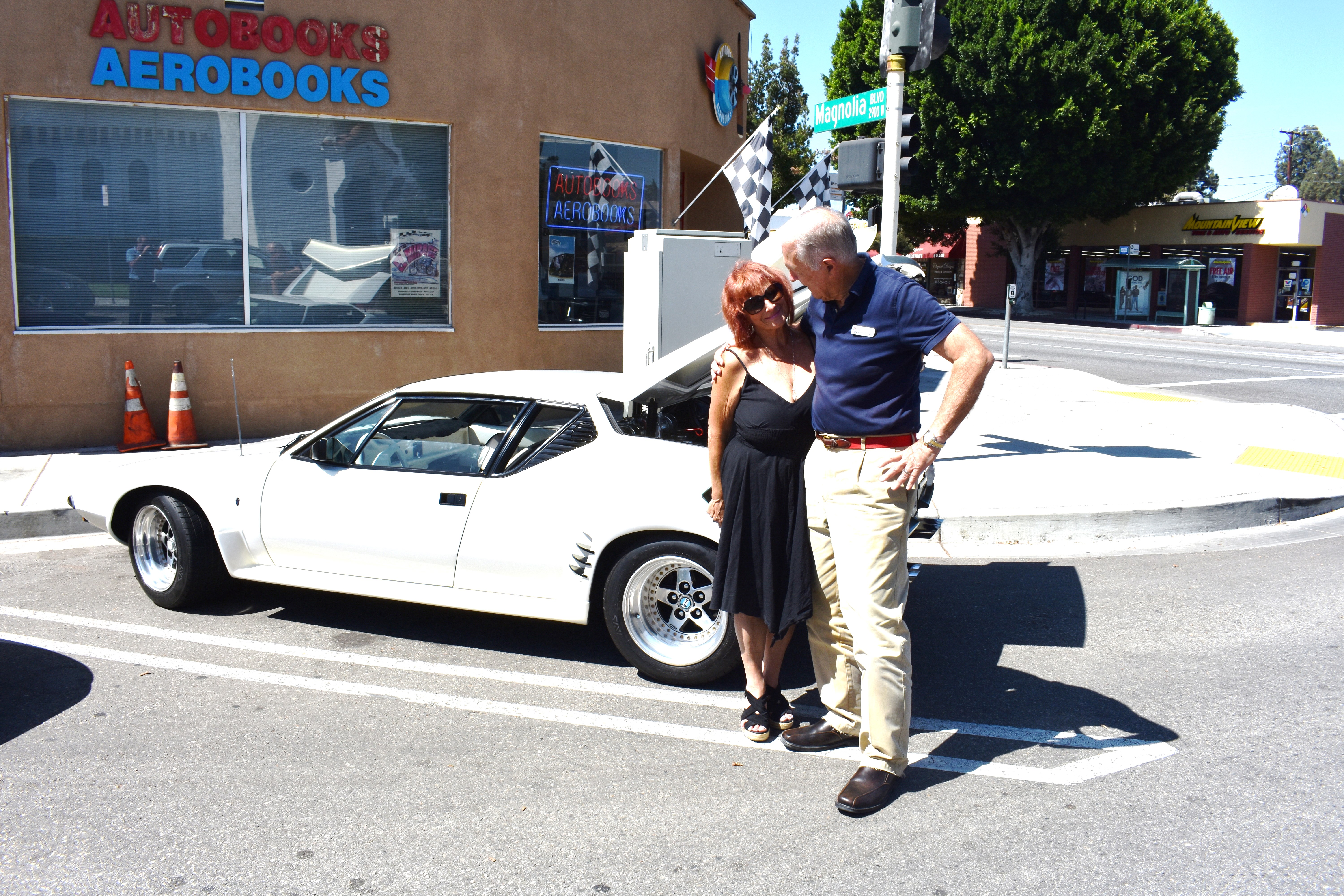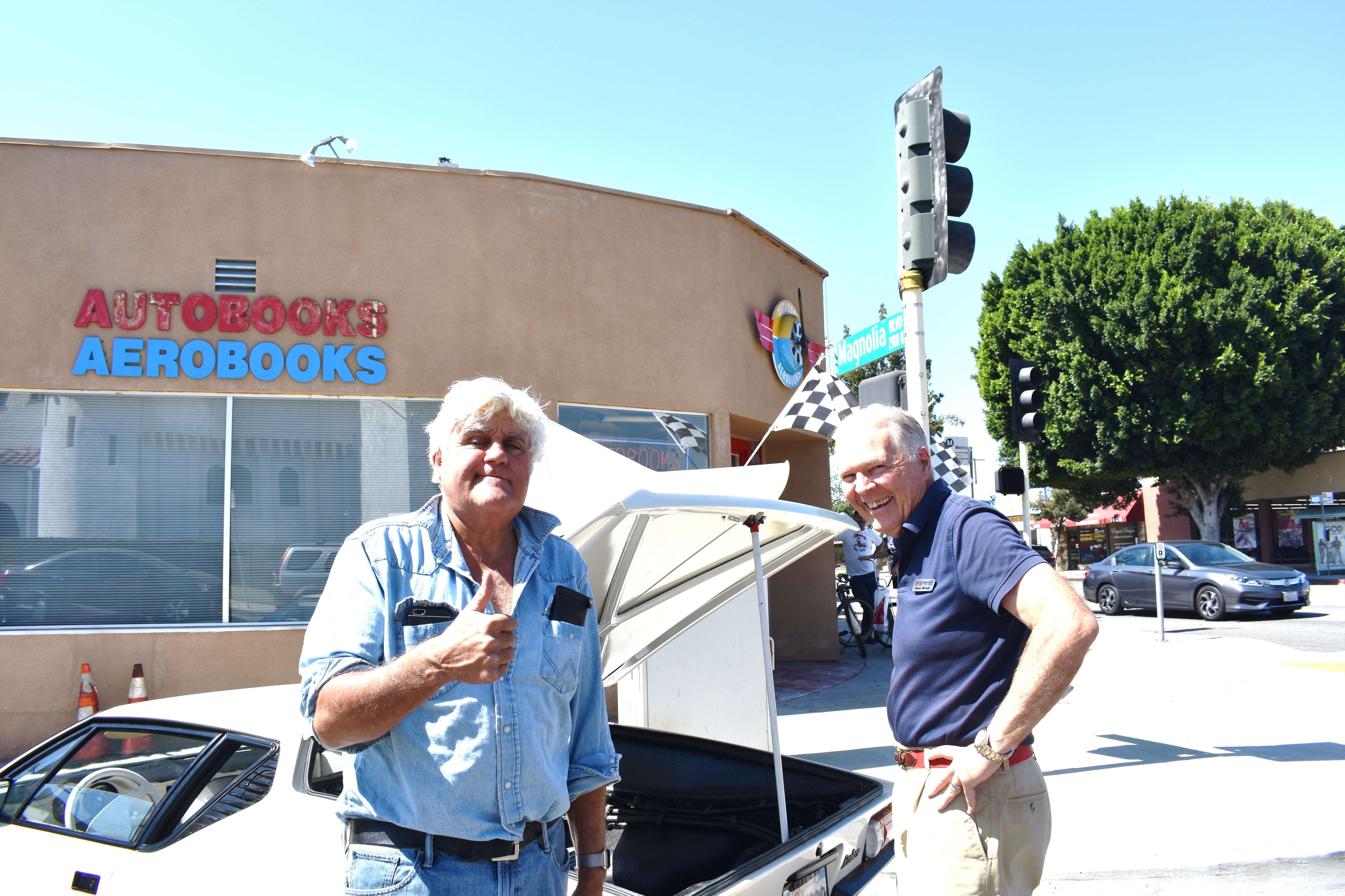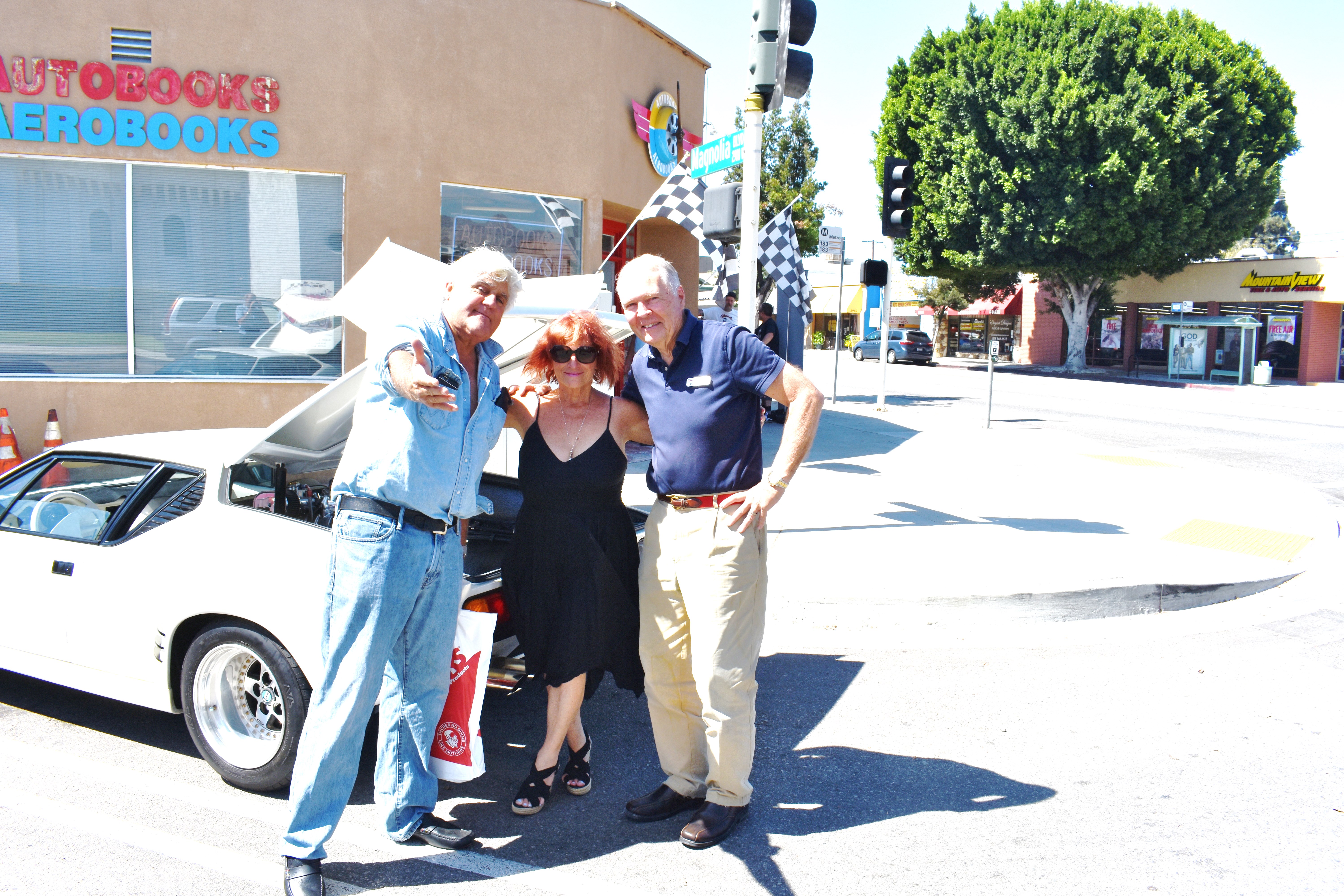 Took a drive in the Pantera to Autobooks this morning, for Peter Brock's book signing. He mentioned how surprised he was to see your beautiful Panteras at SSCC, and sent a hello to you all again. Then along came Jay Leno. It wasn't nearly as good as doing the race but it surely was great to get a few pictures with these guys. Was also so pleased to hear them saying really nice things about my P. (No need to mention my hair on edge, believe me, I know! I'm like a kitty cat; guess when I get excited, my hair sticks up on end).