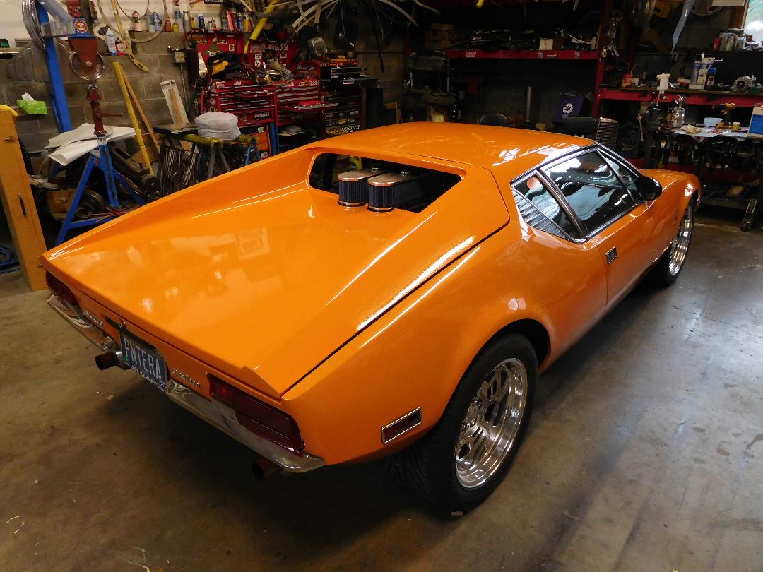 I've enclosed just a couple teaser photos of Randy's Pantera. One is of his impeccable engine bay with the best sounding Webers I have ever heard on a Cleveland engine and one of his custom fabricated aluminum rear deck lid which feels like it can't be much more then 15 pounds.