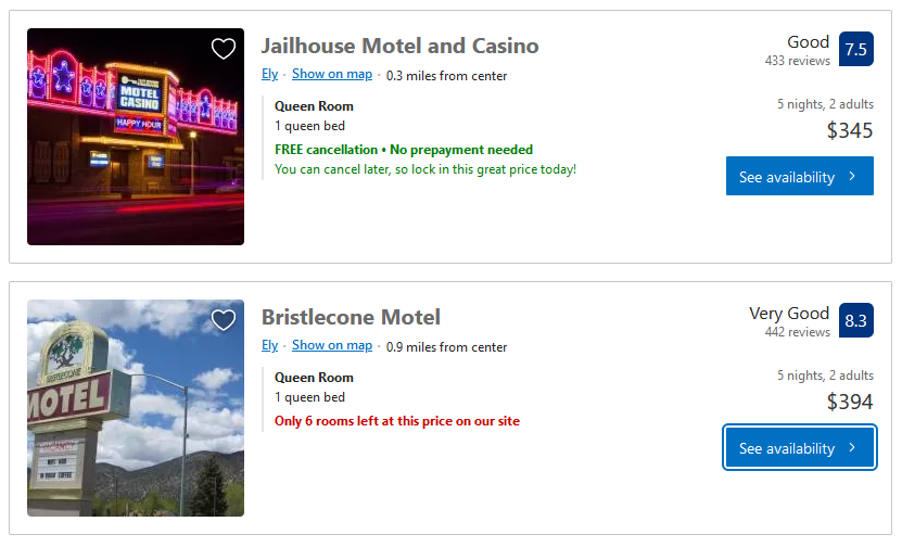 >>> Hotels.com, Expedia.com, and Booking.com ALL SHOWED an OPEN ROOM at Hotel Nevada. Just one though.