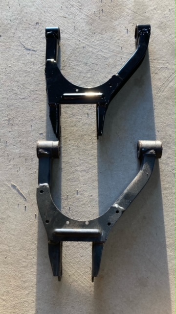 Asa got Johnny Woods A-arms back from the powder coater…here is a side by side of the old and the new.
