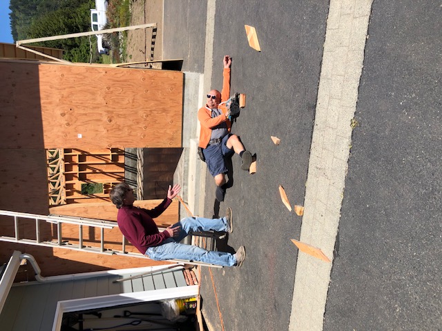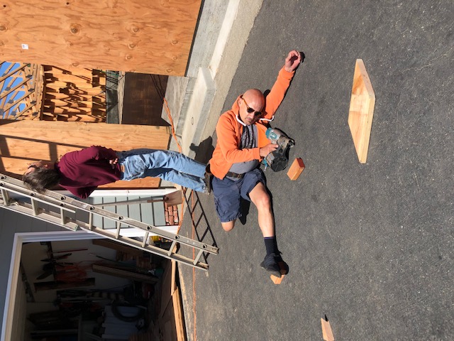 > So I drove the 5 miles from the secret vault down to Randy’s place across the border in Calif this morning at O’dark hours to strap on a tool belt and help him finish framing in his new garage. Of course the weather was perfect and when I arrived Randy handed me a nail gun and said,