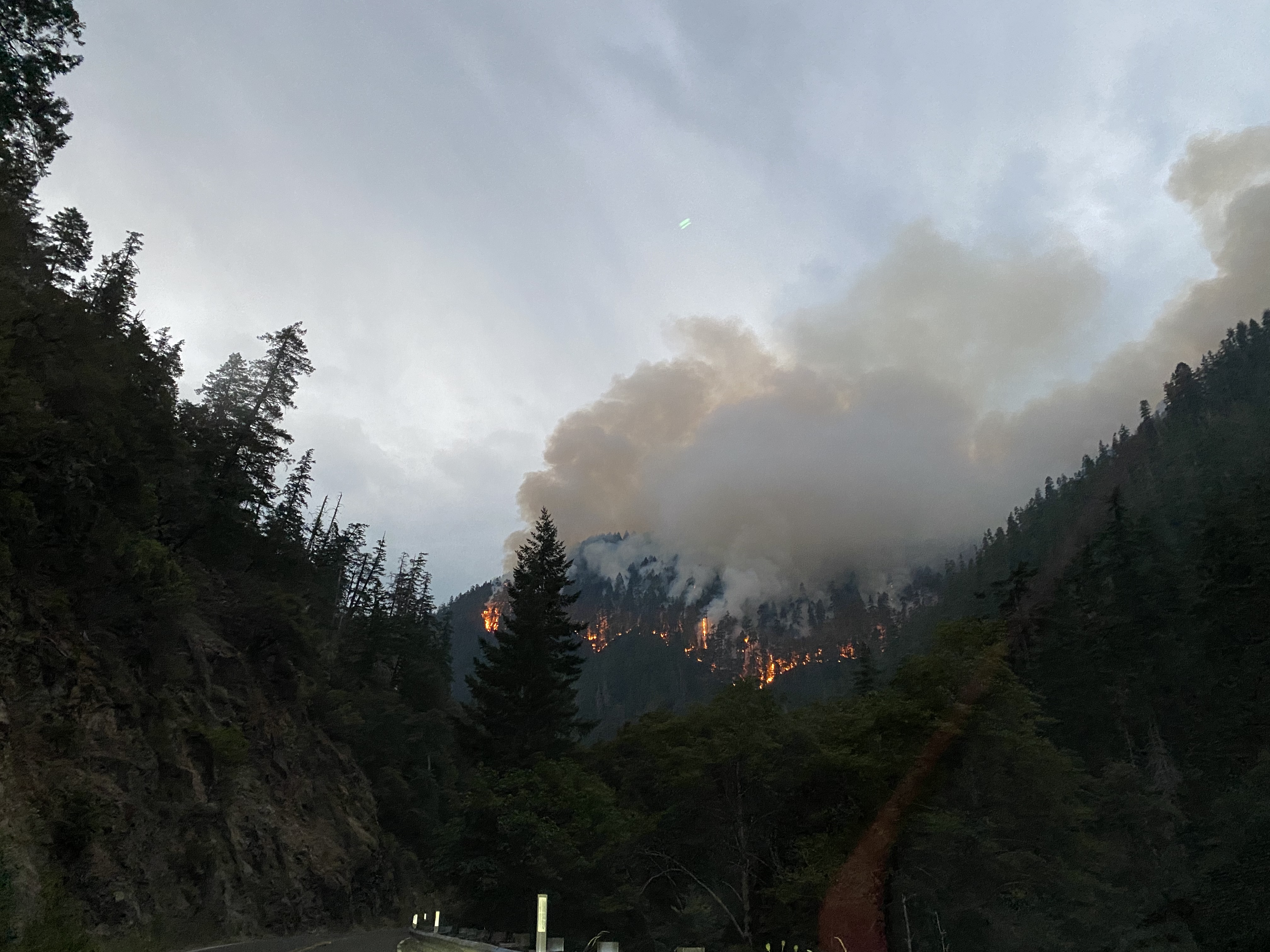 No he’s staying close to shop and his dad’s house in grants Pass because this morning as I was headed east on the H199 I went around the corner and looked up and there were firetrucks everywhere and the whole side of the mountain was on fire. It was ugly.