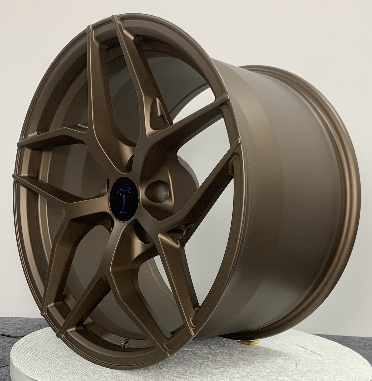 See video of machining and finished powder coated wheels. The Isis logo is blue on black