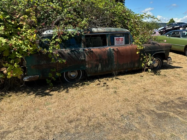 Ernies guess:Mid or Late Chevy wagon. (Wrap around windshield, he thought came out in '65)